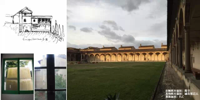 如果非要找一座建筑,对柯布影响最大,那恐怕就得非意大利佛罗伦萨近郊的艾玛修道院(Certosa del Galluzzo)莫属了,柯布曾分别在1907年第一次出国旅行和1911年东方之旅最后一站两次造访了这座始建于十四世纪的修道院。在这里,柯布看到了个人的居住单元与集体的公共空间的完美结合,同样对他之后对于居住的机器性理念产生了深远的影响;以及个人空间内部的自治,一种精神的、信仰的空间,对光,对欲望的控制,达到了一种极致的的控制。柯布本人并未有任何明显的宗教信仰,但他自己曾说过,建筑,便是他的宗教信仰。